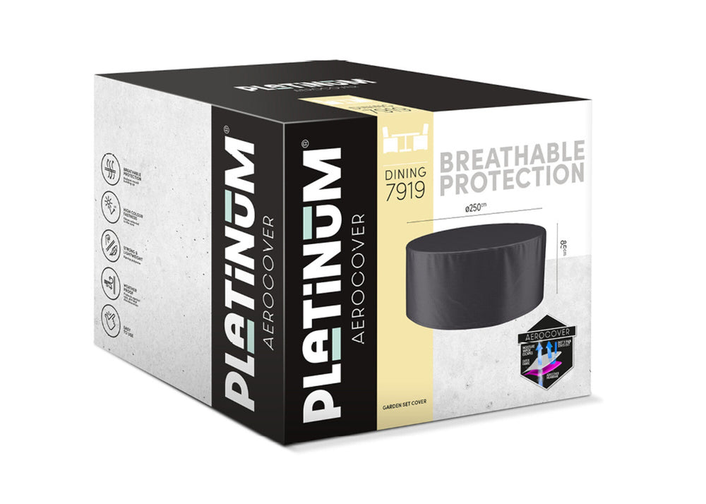 Bescherm uw ronde tuinset optimaal met de AeroCover Platinum hoes (Ø 250 x 85 cm). Deze ademende hoes is speciaal ontworpen voor grote ronde tafels inclusief stoelen. Dankzij het innovatieve AeroCover membraan kan condensvocht van binnenuit ontsnappen, terwijl regen, vuil en UV-straling effectief buiten worden gehouden. Hiermee voorkomt u schimmelvorming en blijft uw tuinset het hele jaar door schoon en droog.