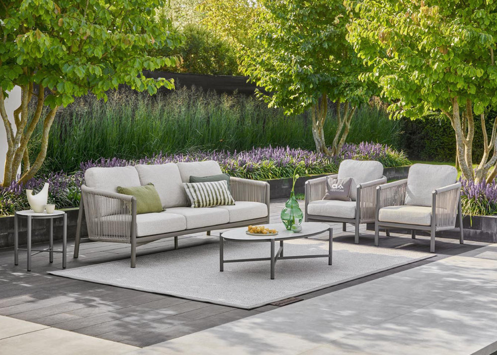 Het aluminium frame is omvlochten met outdoor textileen en is volledig weerbestendig en onderhoudsvrij. Zo geniet je jarenlang zorgeloos van comfort en een warme, natuurlijke uitstraling.
