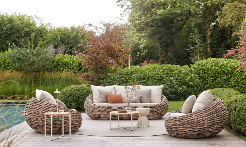 - Hoogwaardige materialen – Het sterke aluminium frame met wicker details biedt duurzaamheid, stabiliteit en een moderne look.