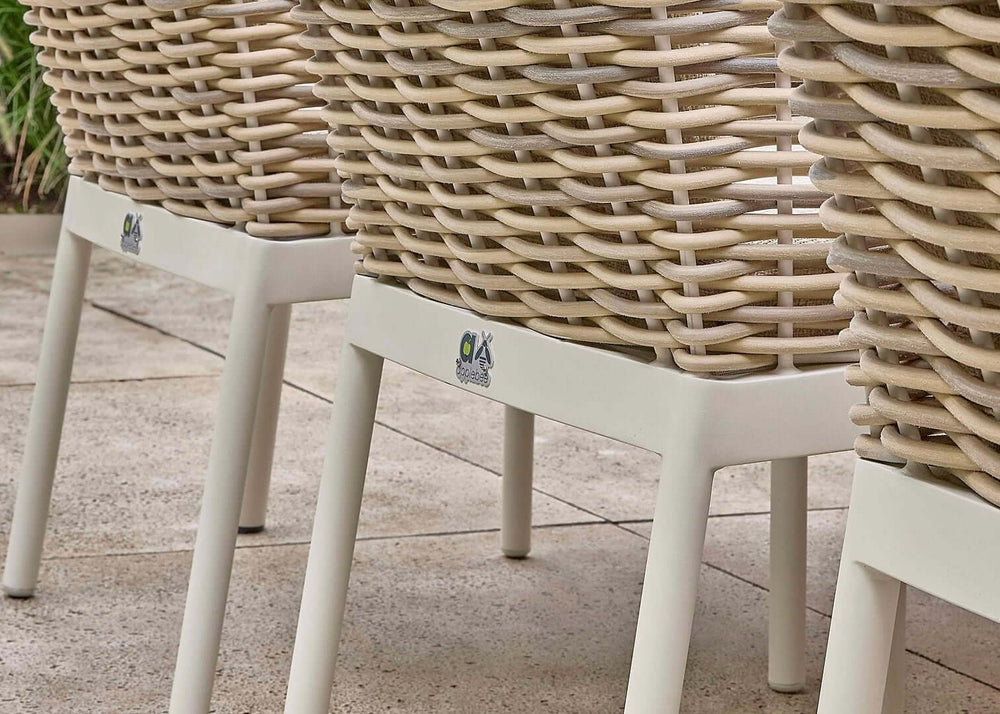 De Apple Bee Milou is volledig onderhoudsvrij dankzij het Biculair® vlechtwerk en roestbestendig aluminium frame. Een vochtige doek erover en hij is weer als nieuw – geen gedoe, alleen genieten.