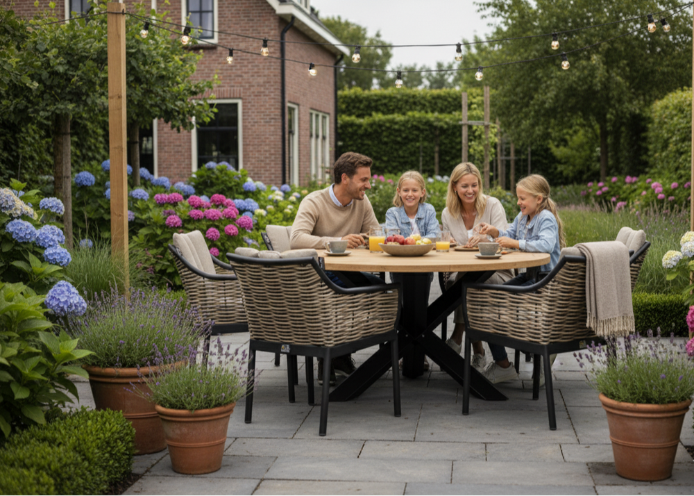 Water- en vuilafstotend, wasbaar en binnen 1-2 uur droog na een regenbui, voor ultiem buitencomfort.