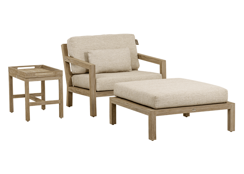 De Apple Bee Olive Voetenbak biedt een tijdloos en uniek loungemeubilair voor jouw buitenruimte. Het robuuste ontwerp, samengesteld uit FSC® en SVLK® gecertificeerd teakhout, geeft een onmiskenbare natuurlijke warmte aan de bank. De Coastal finish zorgt voor een rustige uitstraling die naadloos past bij de omgeving. De Bee Wett® kussens, in een stijlvolle Natural Oak kleur, bieden niet alleen comfort, maar zijn ook weerbestendig en gemakkelijk te onderhouden. De bank is goed te combineren met andere onderdelen van de Olive loungeset.