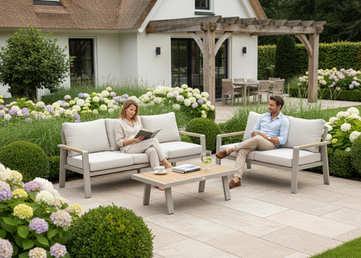 Belito Birmingham Loungeset Nr.1 – Taupe Aluminium – 5 Personen