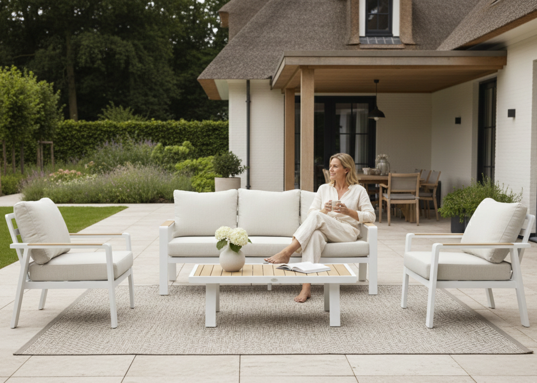 Belito Birmingham Loungeset Nr.1 – Wit Aluminium – 5 Personen