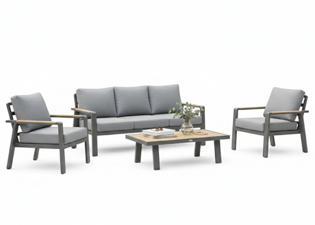 Deze set is ontworpen voor maximaal comfort en minimale inspanning. De UV-bestendige & waterafstotende kussens blijven mooi, terwijl het aluminium frame en de teakhouten details een luxe uitstraling geven. Geniet jarenlang zonder gedoe! Bestel direct online of kom langs in onze showroom in Barendrecht en ontdek het comfort van Belito Ouddorp zelf!
