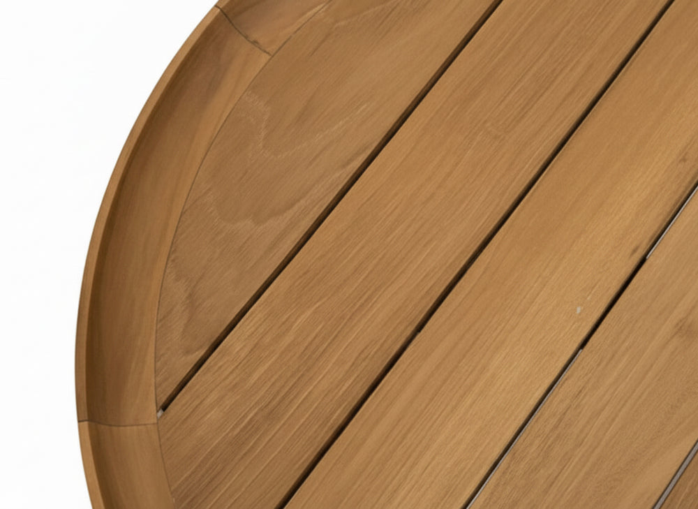 Het matzwarte aluminium frame en de teakhouten leuningen zijn weerbestendig en onderhoudsvrij, voor jarenlang zorgeloos genieten met een warme, natuurlijke uitstraling.