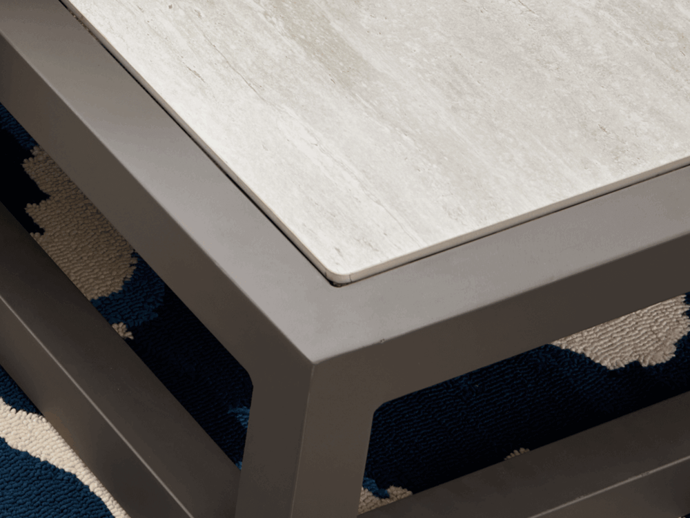 Het gepoedercoate aluminium frame is roestvrij, duurzaam en onderhoudsvrij. Even afnemen met een doek is genoeg.