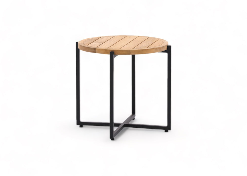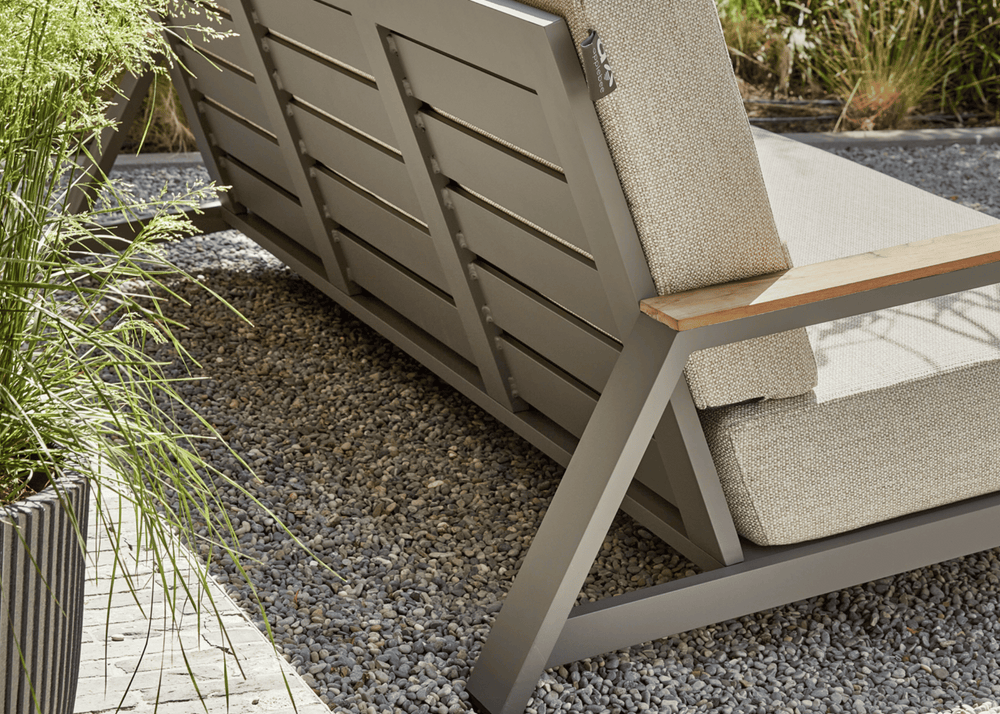 Het Taupe aluminium frame en de teakhouten leuningen zijn weerbestendig en onderhoudsvrij, voor jarenlang zorgeloos genieten met een warme, natuurlijke uitstraling.