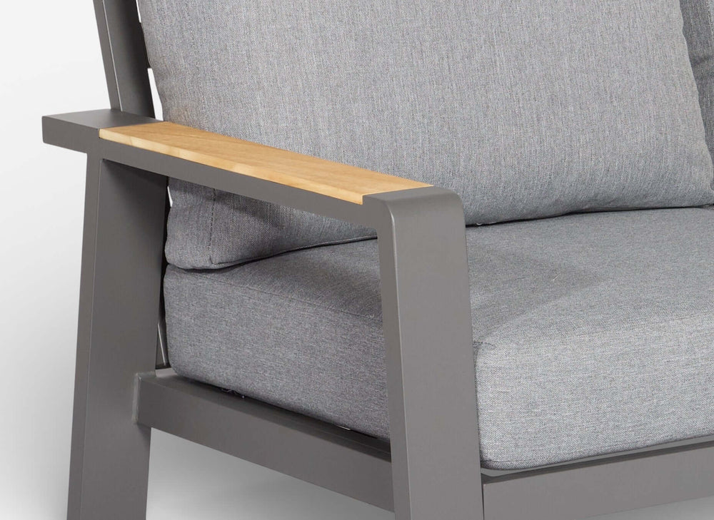 Aluminium frame met luxe teakhouten accenten.