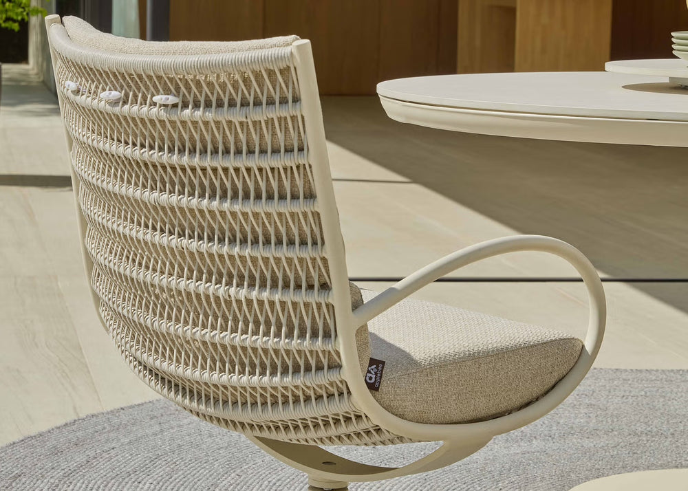 Het Oyster aluminium frame en het verfijnde vlechtwerk zijn weerbestendig en onderhoudsarm, waardoor je jarenlang zorgeloos kunt genieten van een stijlvolle, tijdloze uitstraling.