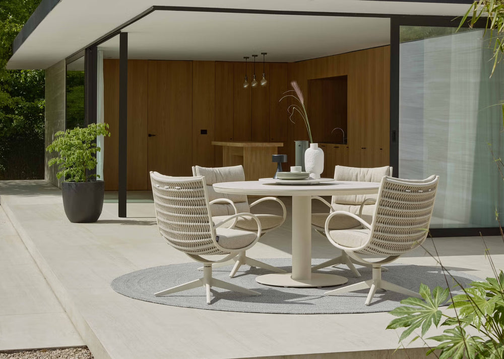 Wil je jouw terras verrijken met een stijlvolle en comfortabele tuinset? Bestel dan de Apple Bee Camps Bay Tuinset in Oyster met de ronde Melville tafel Ø140 cm. Geniet van design, duurzaamheid en het comfort waar Apple Bee wereldwijd om bekendstaat. Neem contact met ons op voor persoonlijk advies of bezoek onze showroom om deze set in het echt te ervaren.