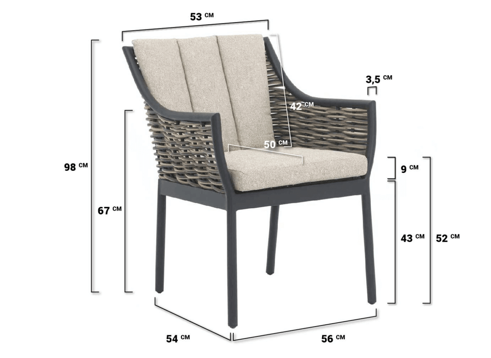• Onderhoudsvriendelijk – Zowel de tafel als de stoelen zijn eenvoudig schoon te maken en weerbestendig.