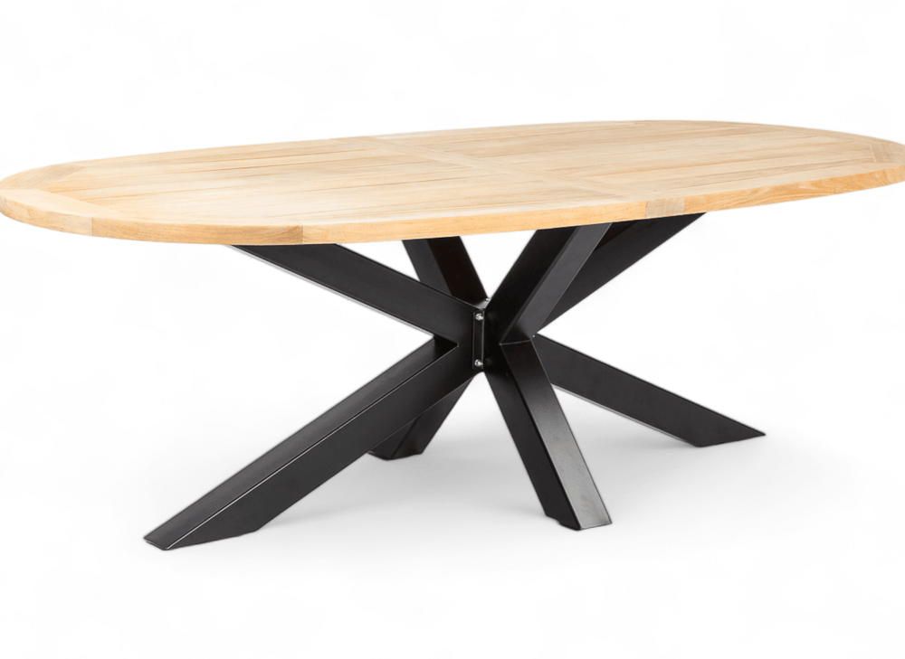 • Royale 240 cm teakhouten tafel – Gemaakt van Grade-A teakhout met een natuurlijke, robuuste uitstraling en een stevig aluminium onderstel.