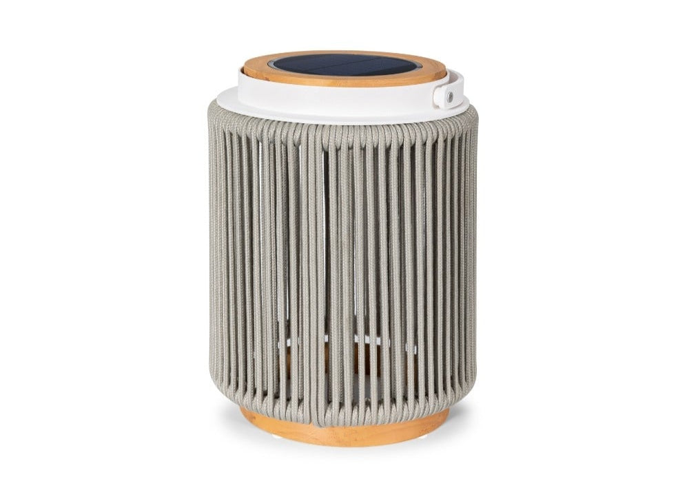 Valentino sfeerlamp tuin solar - aluminium - teakhout - light grey - 34 cm