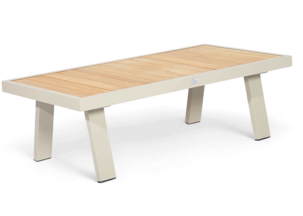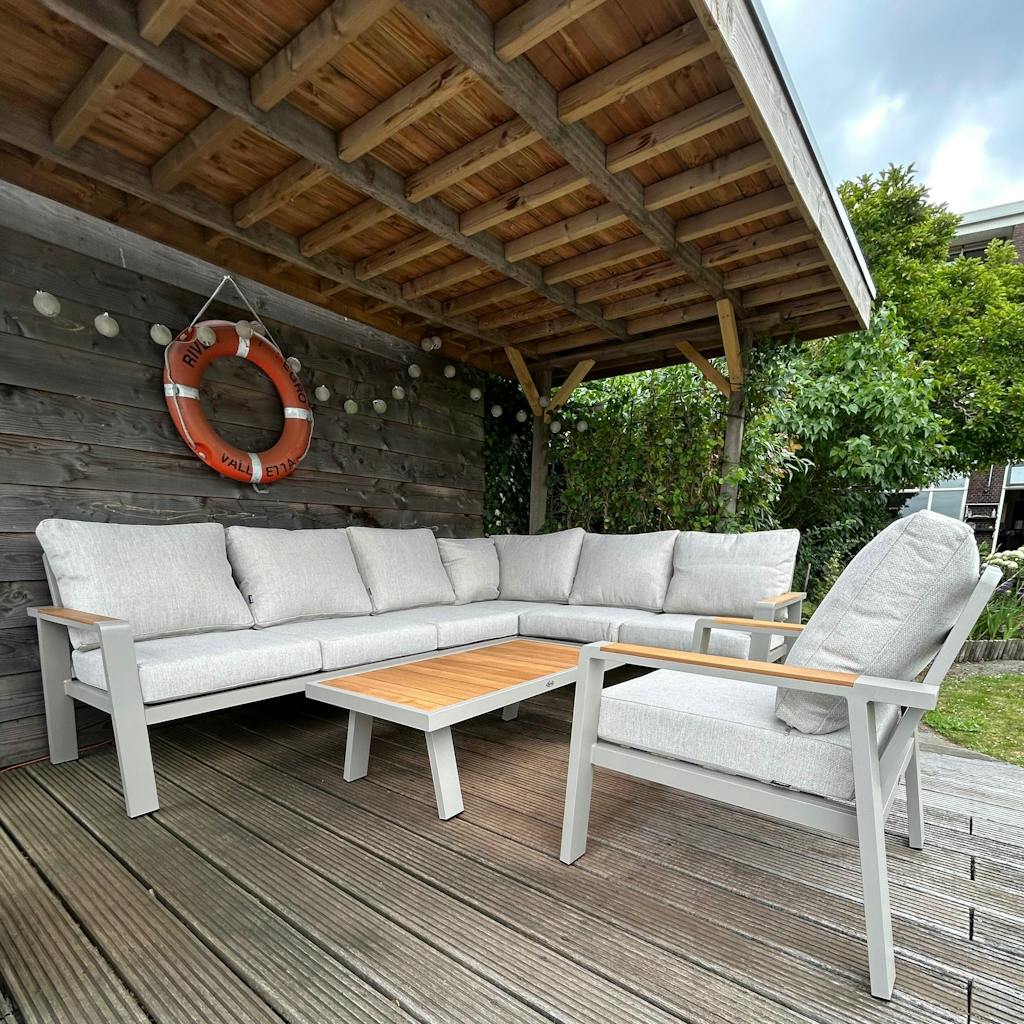 Aluminium frame met luxe teakhouten accenten.