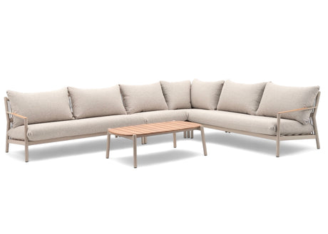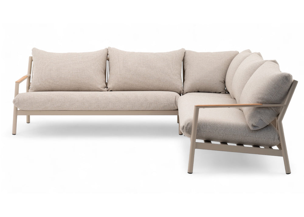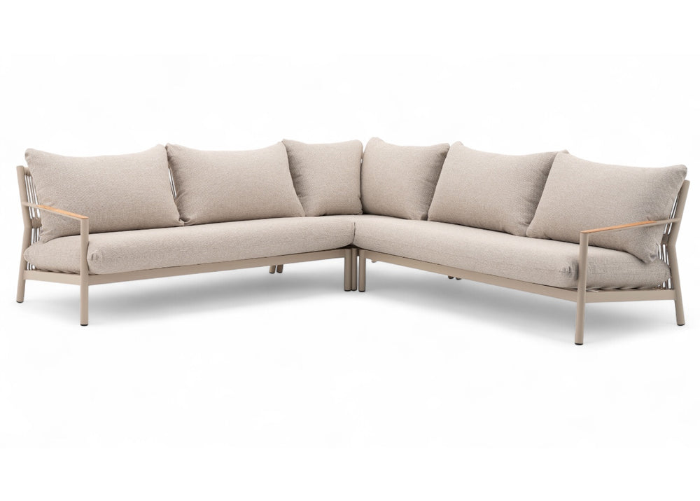 Geef je tuin of terras een luxe uitstraling met de Julia Hoekbank van 260 x 260 cm. Deze royale loungeset combineert strak aluminium, elegante rope-details en warm teakhout tot een perfect geheel. De hoogwaardige materialen zorgen niet alleen voor een moderne look, maar ook voor jarenlang buitenplezier. Compact in vorm, groots in comfort – precies wat je zoekt voor ontspannen zomerdagen.