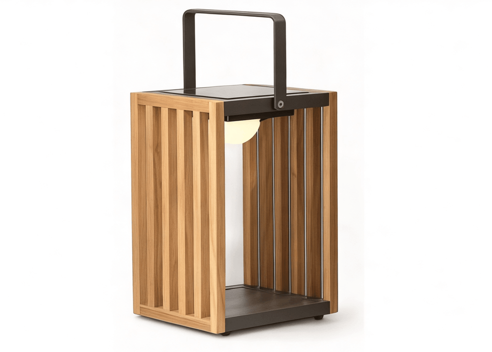 De Ciro Solar Buitenlamp S combineert modern design met natuurlijke materialen. Gemaakt van teakhout en aluminium, is dit compacte model een echte blikvanger voor tuin, terras of balkon. Geen kabels nodig – alleen zonlicht.